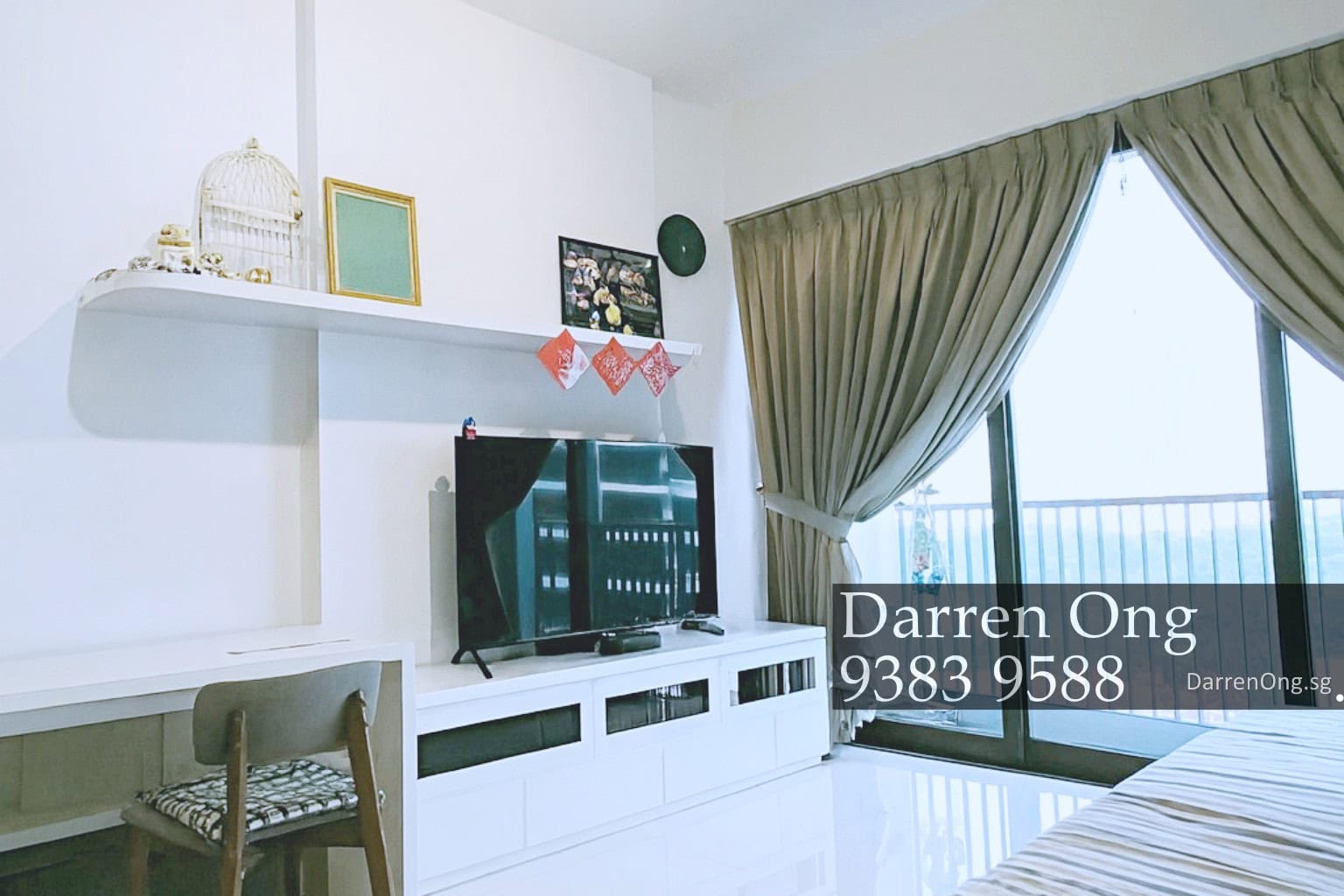 The unit is bright, breezy, and filled with natural light throughout the day — a quality that flows directly from Zaha Hadid’s signature design philosophy of optimising each unit’s orientation for maximum light and air flow. The wide living room is generously proportioned for a 1-bedroom configuration, comfortably accommodating a full sofa arrangement and dining setup without compromise. The overall spatial quality feels noticeably more expansive than comparable unit types in newer developments — a reflection of d’Leedon’s larger-than-average floor plates across its 1-bedroom + study range.