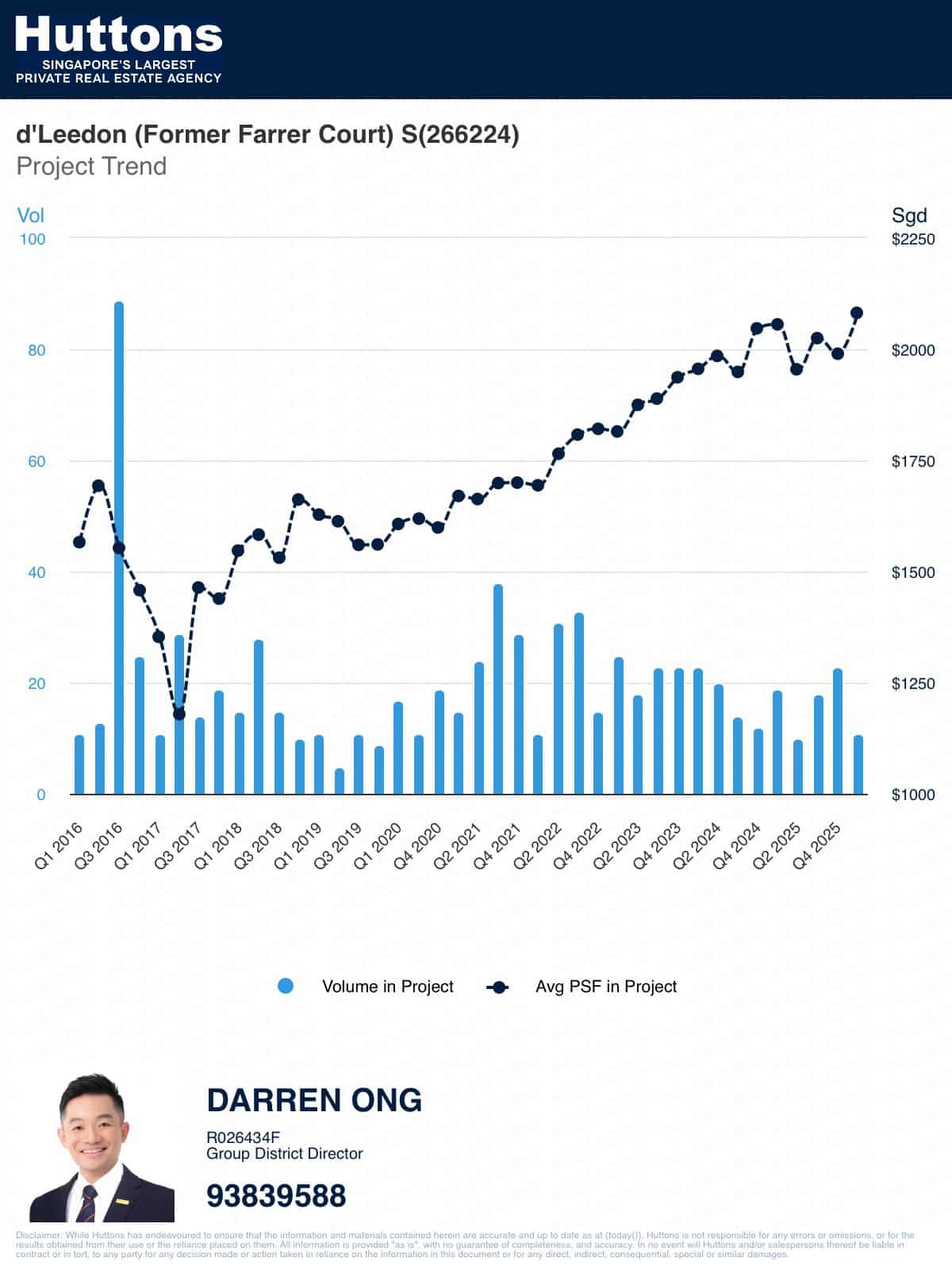 Investment & Own Stay Perspective: Whether you are a single professional or a couple seeking a beautifully positioned home in one of Singapore’s most prestigious districts, or an investor looking for a well-located asset with strong rental credentials, this unit presents a compelling case on both fronts. District 10’s expatriate community — drawn by proximity to international schools, Holland Village, Dempsey Hill, and the Circle Line — ensures a deep and consistent tenant pool for landlords. Based on Huttons Superapp Analytics (past 12 months), 1-bedroom units at d’Leedon have transacted at rental prices ranging from S$3,000 to S$4,700 per month, with a median of S$3,916/month (S$5.97 psf) and a yield range of 2.27% to 4.74%, with a median yield of 3.55% — based on 101 rental transactions. For a District 10 address of this prestige and outlook, these figures reflect a resilient and well-supported rental market.